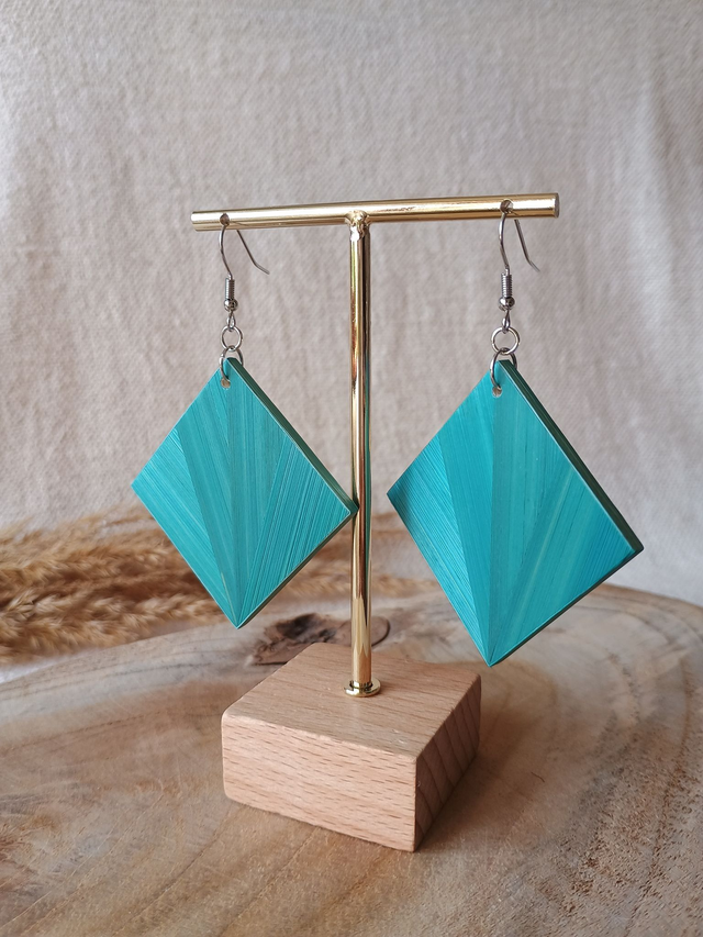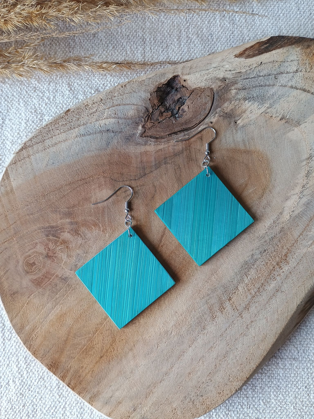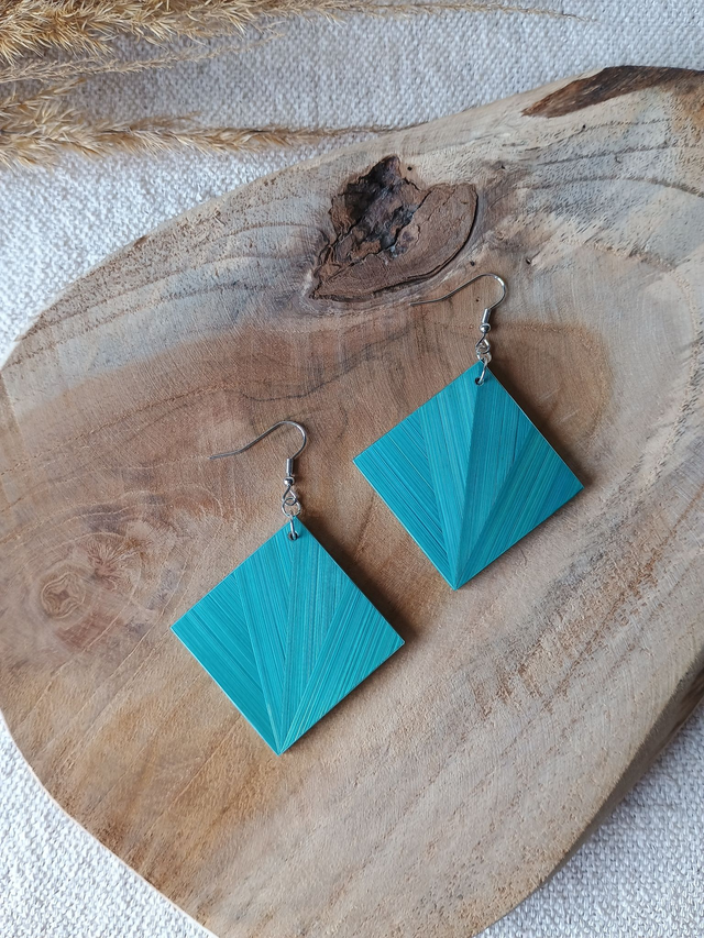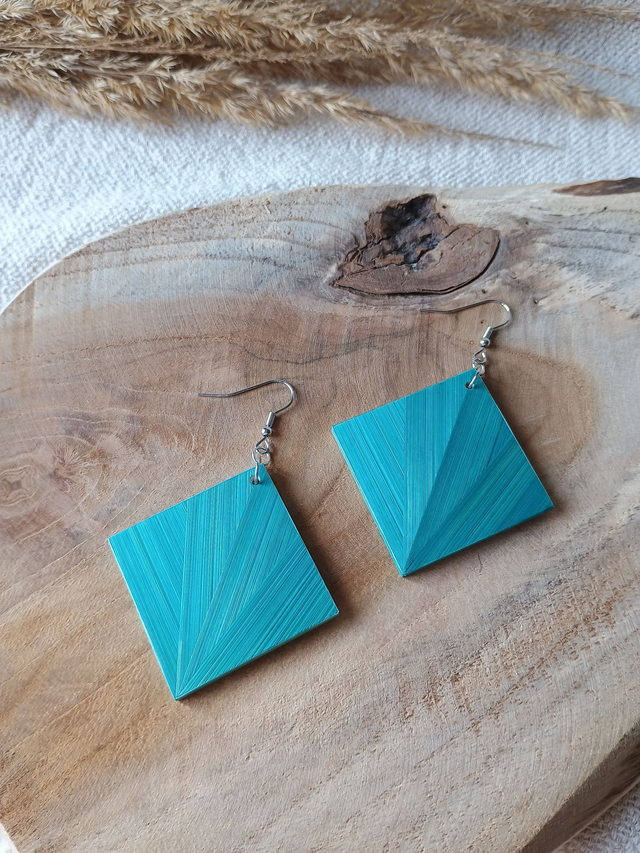 Évadez-vous vers les eaux turquoise avec nos élégantes boucles d'oreilles carrées aux motifs éventails.