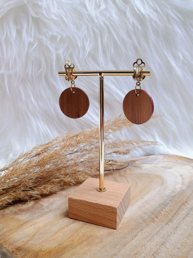 Boucles d'oreilles modèle Clip mosaïque bordeaux/rose/doré