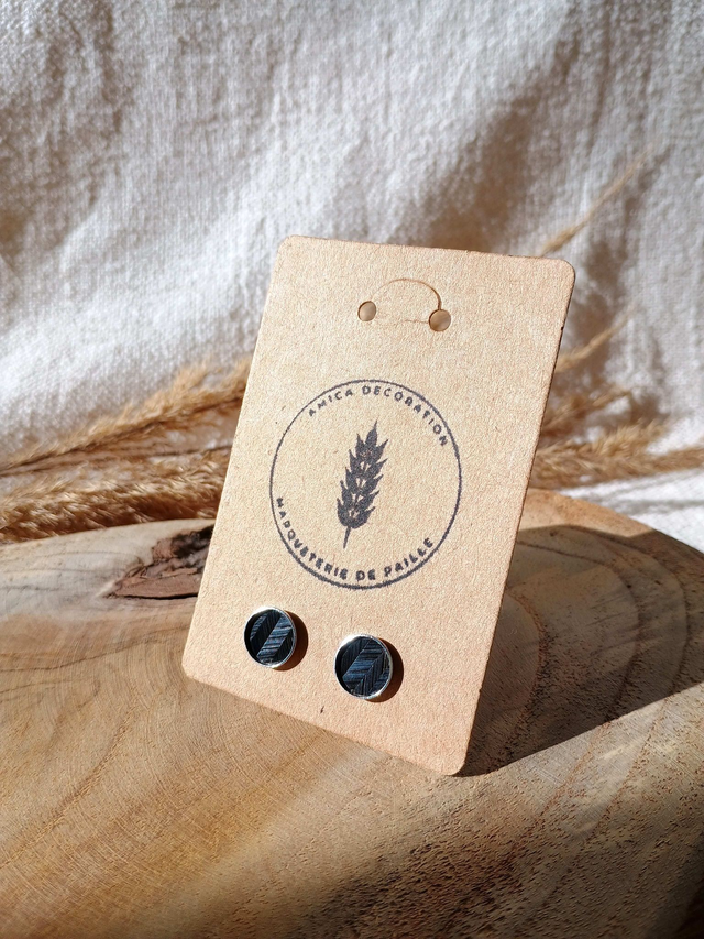 Clous d'oreilles argentés motifs chevrons paille de seigle noire.