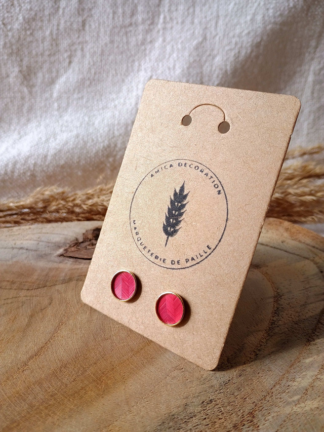 Clous d'oreilles dorés motifs chevrons paille de seigle rouge.