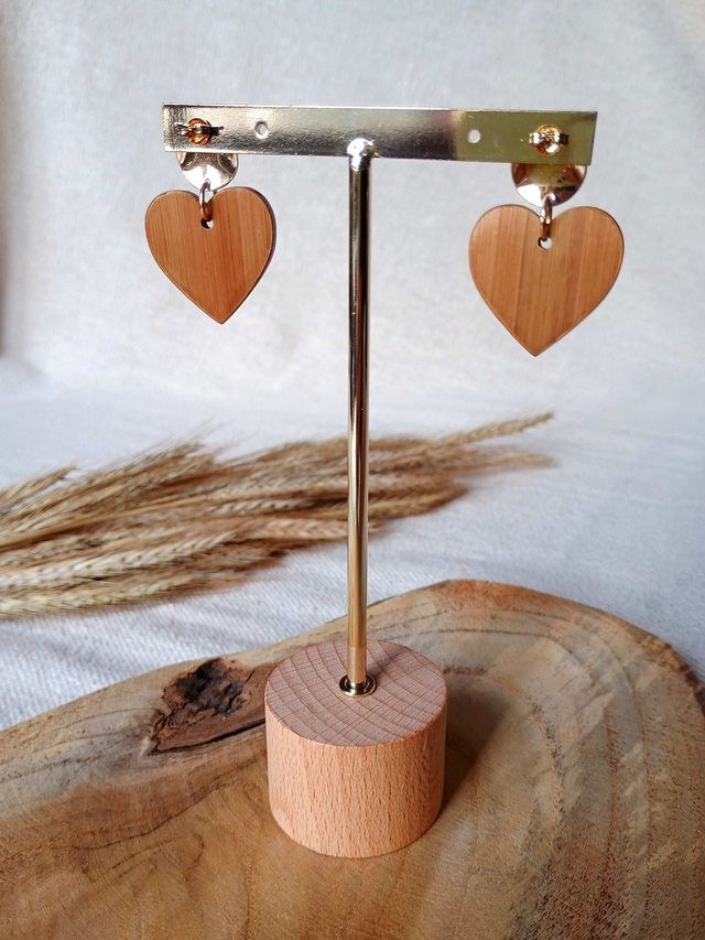 Boucles d'oreilles modèle Cœur tons bois motif chevron