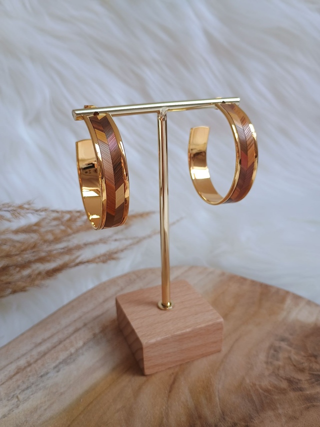 Boucles d'oreilles créoles larges chevron bois