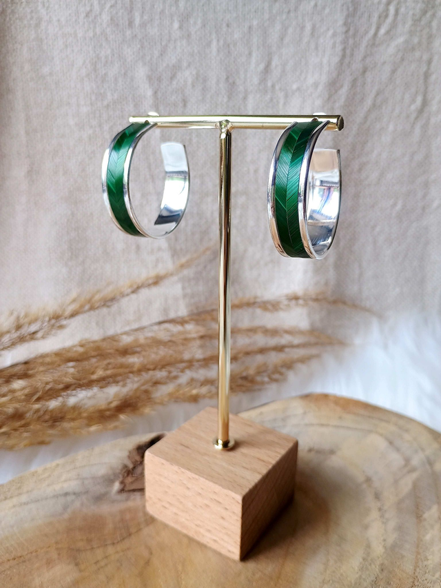Boucles d'oreilles créoles larges chevron vert