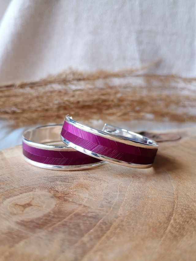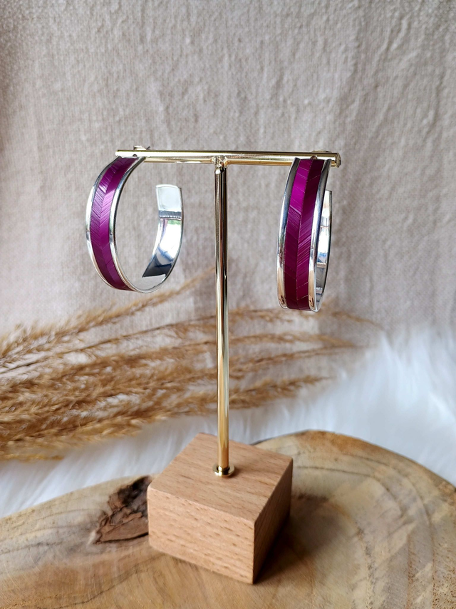 Boucles d'oreilles créoles larges chevron violine