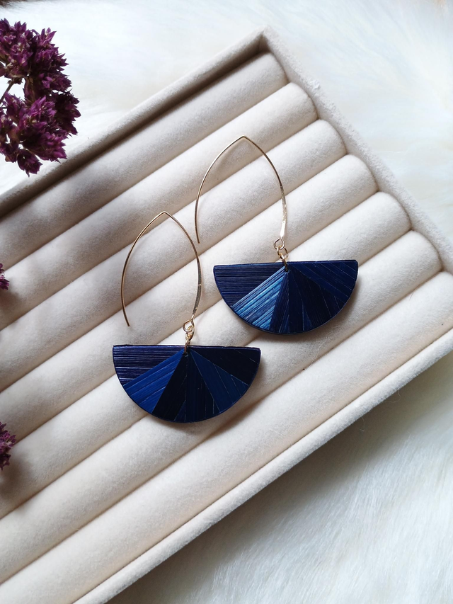 Boucles d'oreilles modèle Demi-lune éventail bleu roi