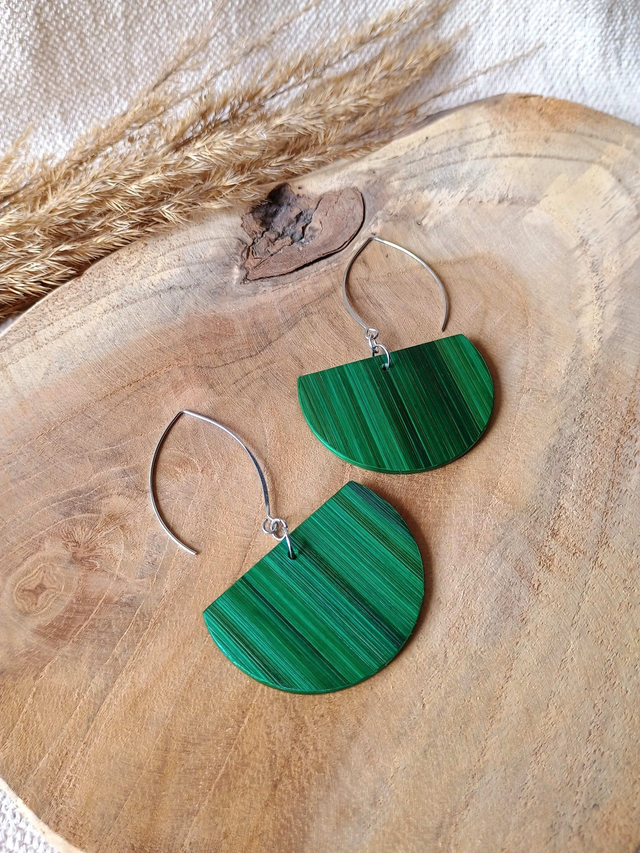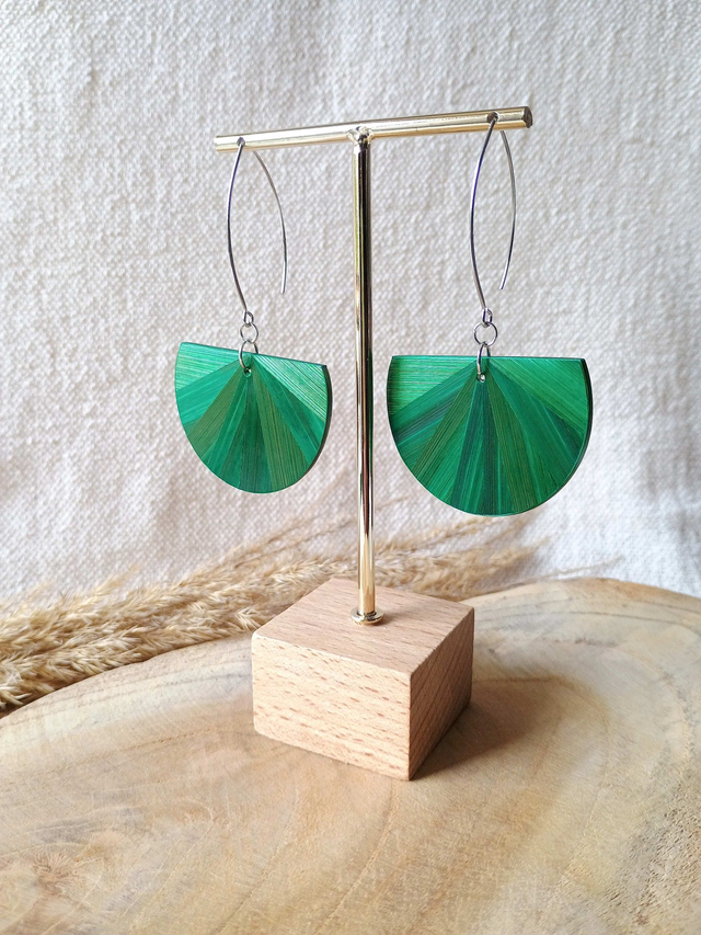 Boucles d'oreilles modèle Demi-lune éventail vert jungle