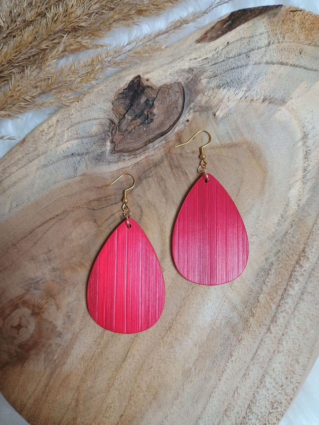 Boucles d'oreilles Modèle Goutte motif éventail rouge