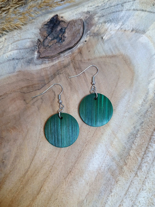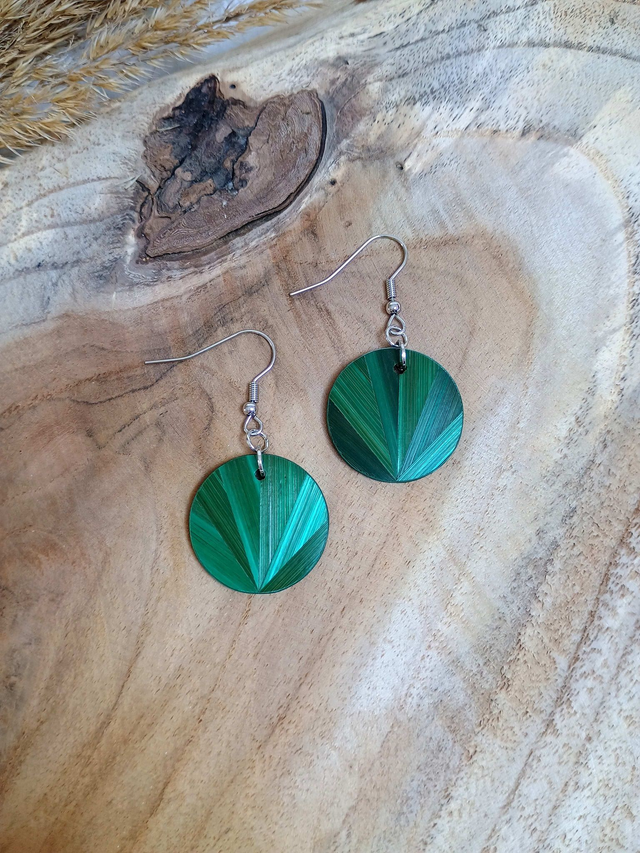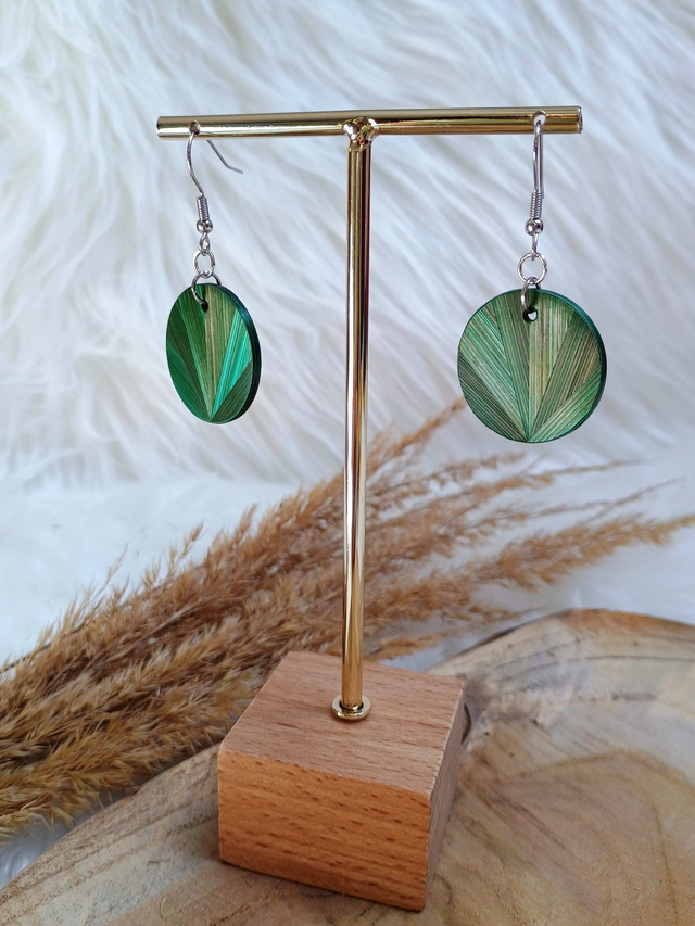Boucles d'oreilles modèle Simple motif éventail paille de seigle vert