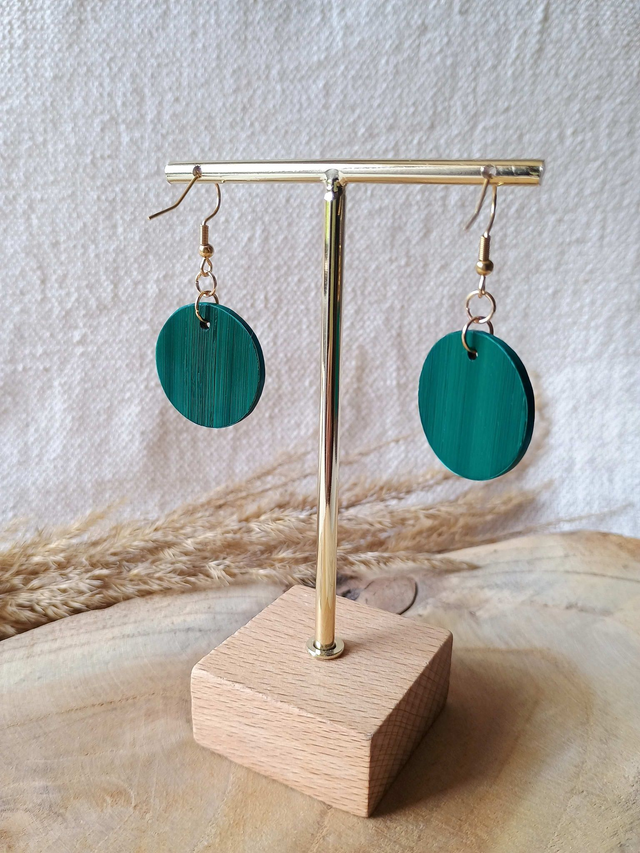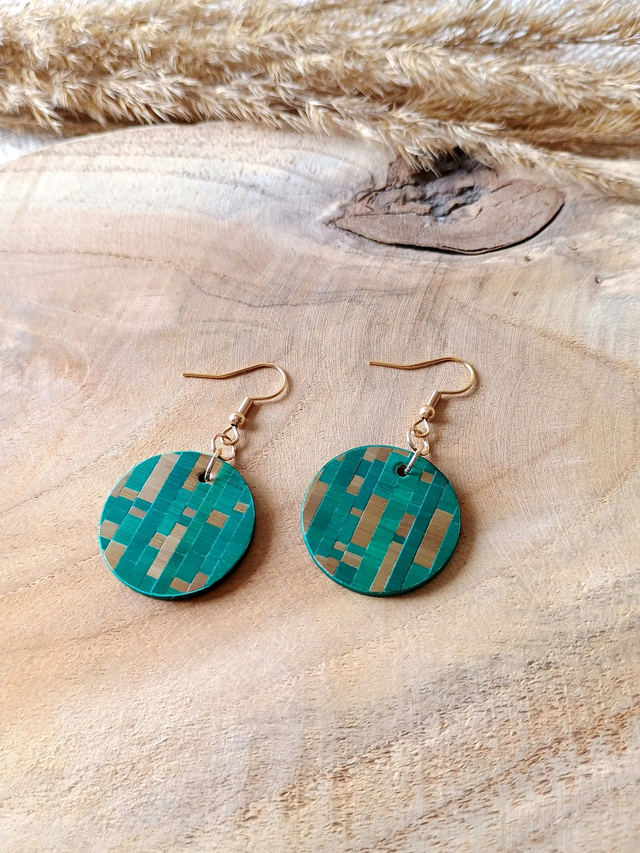 Boucles d'oreilles modèle Simple motif mosaïque paille de seigle vert/doré