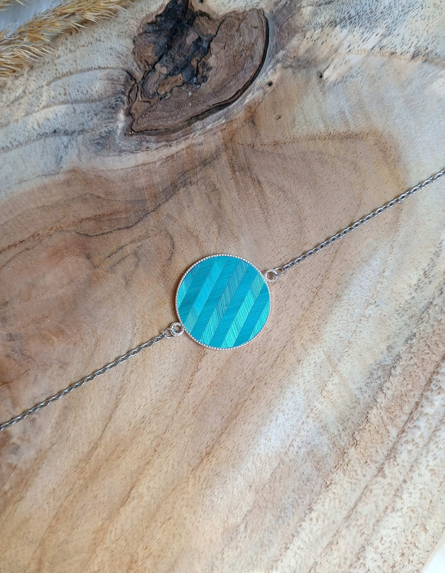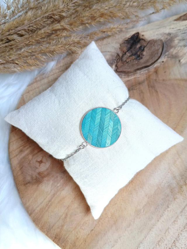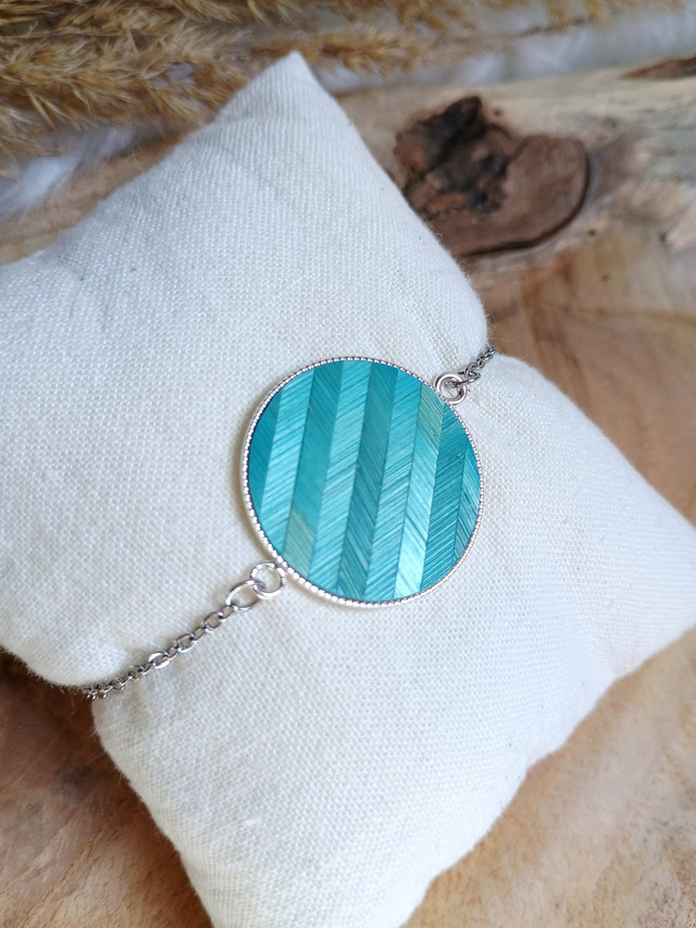 Bracelet argenté rond chevron bleu turquoise