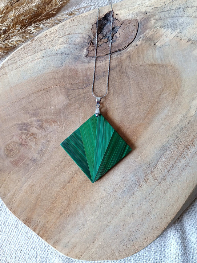 Collier modèle Carré motif éventail vert jungle