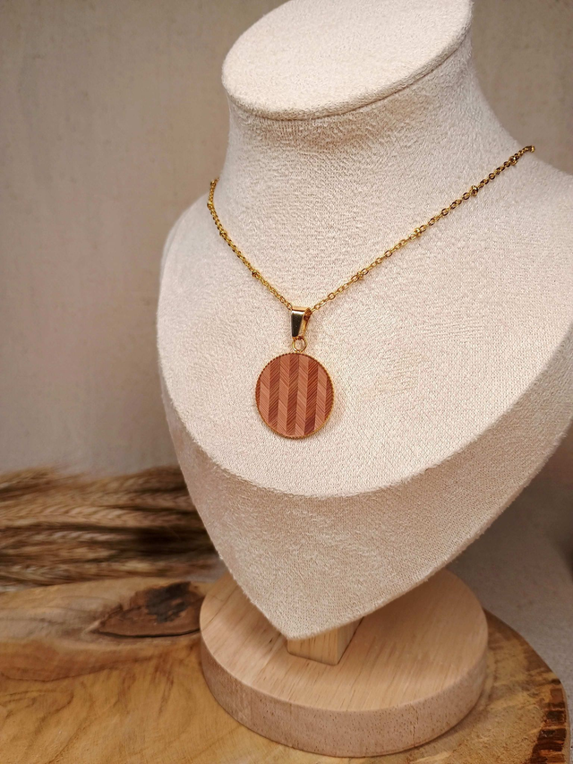 Collier MÉDAILLON Chevron Nude- Acier inoxydable doré